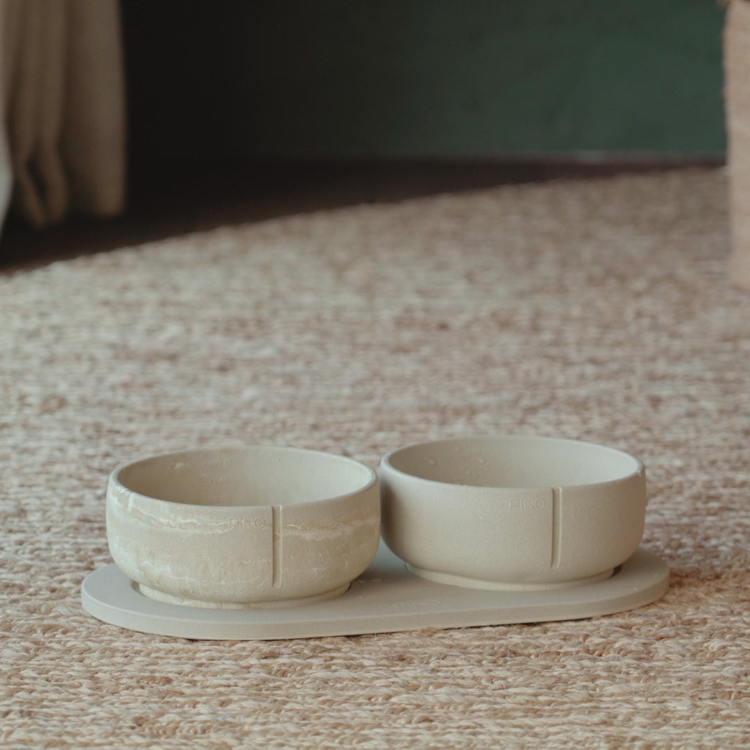 That’s why Pino Sandstone® was created — heavy, sturdy, nonporous, and safe for pets with allergies or sensitive skin. It stays upright, won’t break, and keeps food fresh, without BPA, phthalates, formaldehyde, or lead.