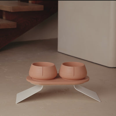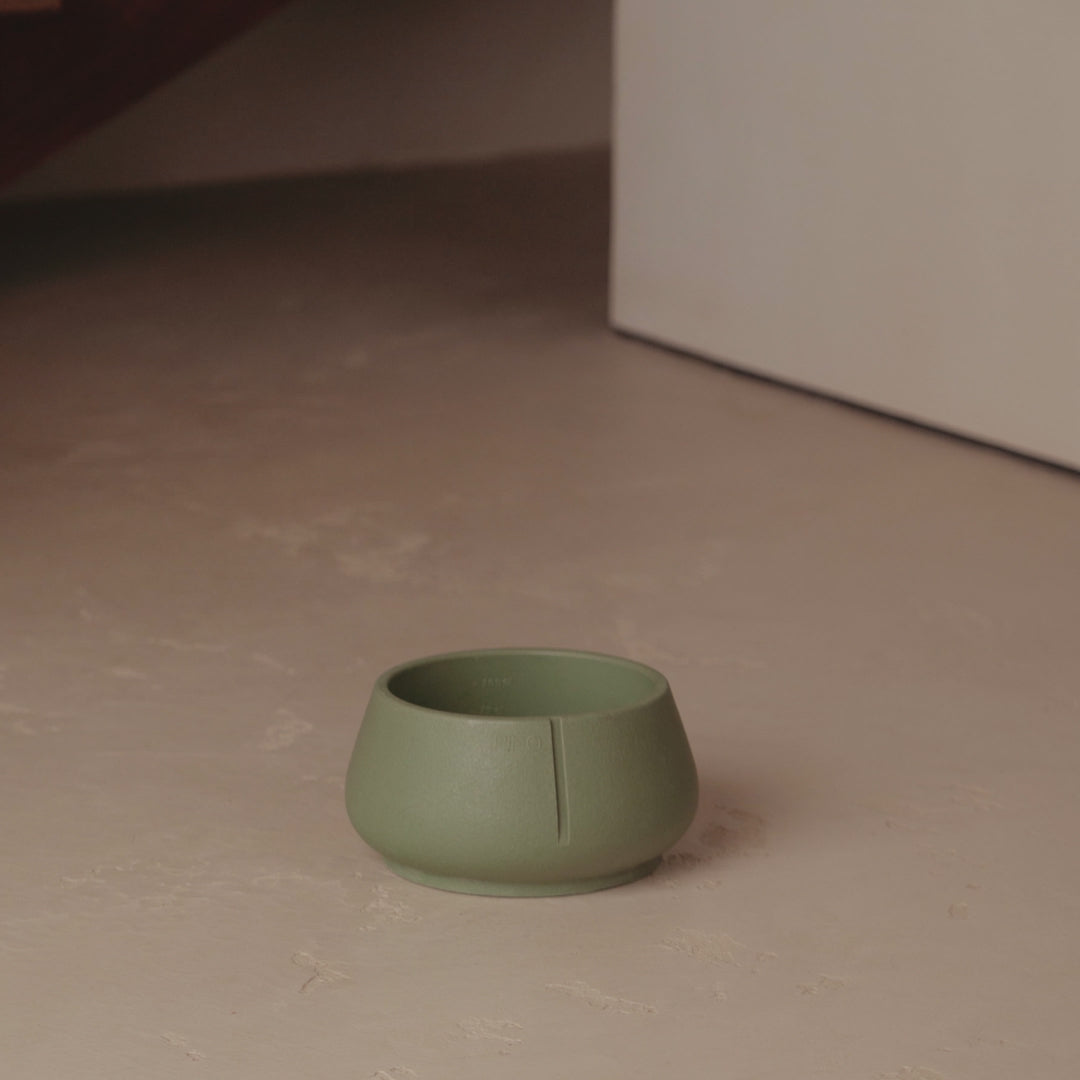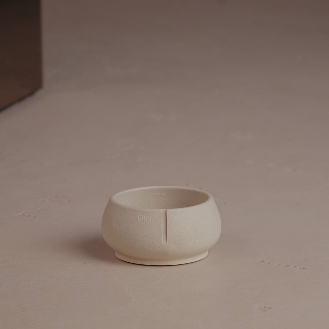 Consists primarily of natural sand, supplemented with a small percentage of natural pigments and a structural binding agent. By working with natural raw materials, PINO has reduced its ecological footprint and creates bowls that are truly durable.